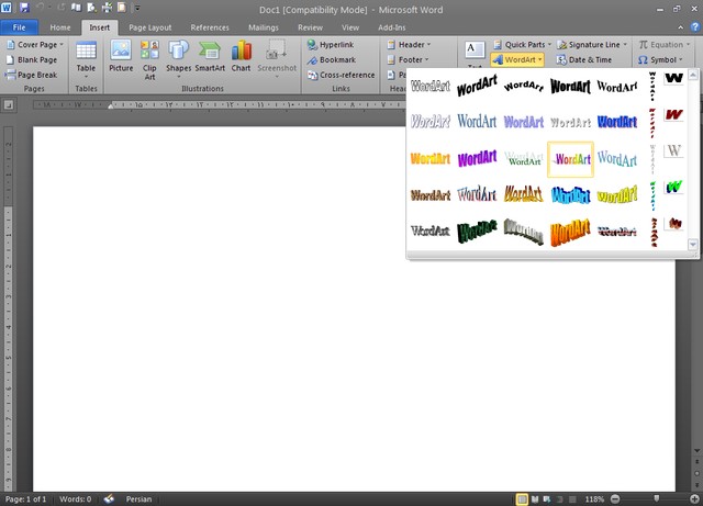 *چطور word Art وورد 2010 را به صورت قدیمی استفاده کنیم؟